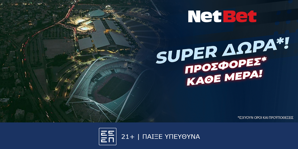 Διπλή προσφορά* γνωριμίας, Σκόρερ Predictor που μοιράζει μετρητά*, Boost νίκης στα παρολί*, Cash Out, Ενισχυμένες αποδόσεις*, υπερσύγχρονη πλατφόρμα για live betting, νέο Bet Builder και Ατζέντα καθημερινών προσφορών* στο live casino, μόνο στη NetBet!
