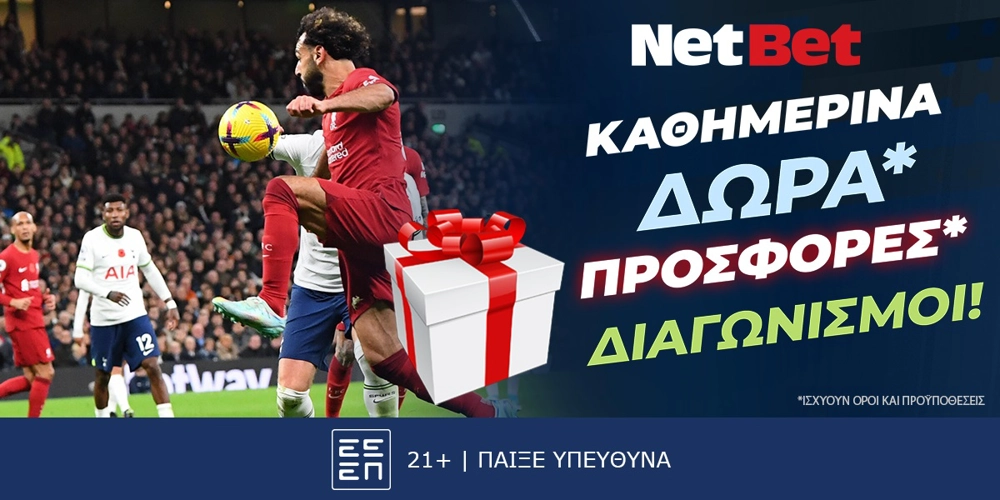 Διπλή προσφορά* γνωριμίας, Σκόρερ Predictor που μοιράζει μετρητά*, Boost νίκης στα παρολί*, Cash Out, Ενισχυμένες αποδόσεις*, υπερσύγχρονη πλατφόρμα για live betting, νέο Bet Builder και Ατζέντα καθημερινών προσφορών* στο live casino, μόνο στη NetBet!