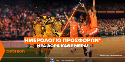 Στην Betsson, κάθε μέρα είναι ξεχωριστή, με νέες προσφορές* και εκπλήξεις που συνεχίζονται μέχρι το τέλος όλων των διοργανώσεων!