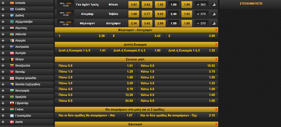 επάνω στη χώρα ή στη σημαιούλα της, ανοίγουν τα πρωταθλήματα και στην κεντρική στήλη της σελίδας ανοίγουν οι προσφερόμενοι προς στοιχηματισμό αγώνες